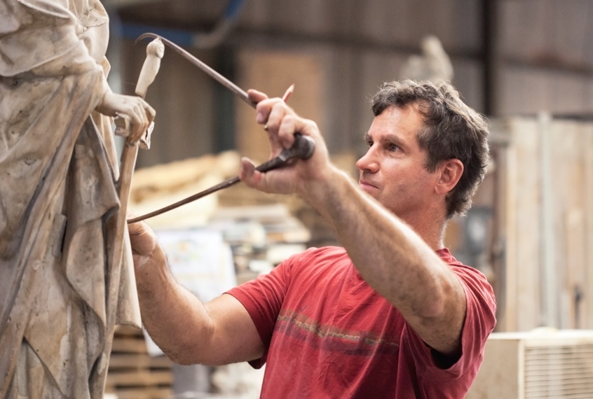 Descendant d’une grande lignée d’artisans de la pierre et de sculpteurs, Mike a commencé sa formation dans l’abri de jardin de son père. C’est à cet endroit qu’il a acquis les différentes subtilités techniques nécessaires pour reproduire de magnifiques détails tels qu’une émotion dans le regard, un pli fin dans un vêtement ou une mèche de cheveux délicate.