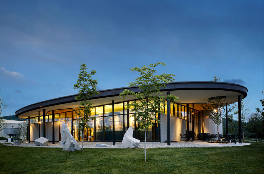 Your Rock of Ages tour experience typically begins at our modern Visitors Center. Here you can reserve your guided caravan tour ticket, enjoy a video about the quarrying and manufacturing processes in our unique round theater, browse historic photos and exhibits, shop for natural stone gifts and enjoy warm Vermont hospitality.